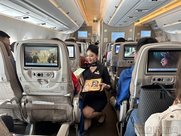 當(dāng)天的航程中,乘務(wù)組以“書香最抵人心,閱讀丈量世界”的特色廣播拉開序幕,帶領(lǐng)旅客踏上《典籍有意思·奇獸傳說》主題之旅。“上圖·凌燕”志愿服務(wù)隊成員手持《坤輿圖說》《營造法式》等典籍復(fù)刻卷軸,穿梭客艙為旅客們講述古籍中的瑞獸傳奇。