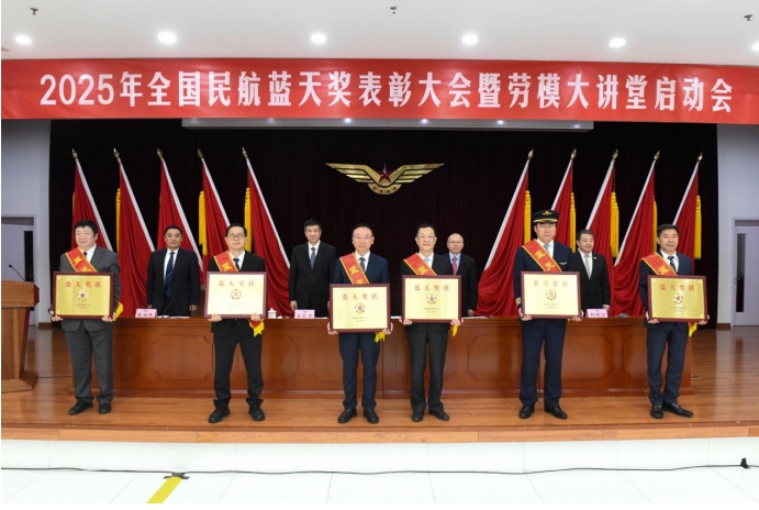 經(jīng)黨和國家功勛榮譽(yù)表彰工作委員會(huì)辦公室同意,2025年“五一”前夕,民航局開展藍(lán)天獎(jiǎng)狀、藍(lán)天獎(jiǎng)?wù)略u(píng)選表彰。會(huì)議宣讀了民航局表彰決定并進(jìn)行頒獎(jiǎng),授予國航西南分公司等27個(gè)單位、國航飛行總隊(duì)第四飛行大隊(duì)一中隊(duì)晨風(fēng)班組等48個(gè)班組藍(lán)天獎(jiǎng)狀榮譽(yù)稱號(hào),張鳳麟等75名同志藍(lán)天獎(jiǎng)?wù)聵s譽(yù)稱號(hào)。藍(lán)天獎(jiǎng)?wù)芦@得者、國航飛行總隊(duì)三大隊(duì)一中隊(duì)中隊(duì)長王雨寒宣讀了倡議書。