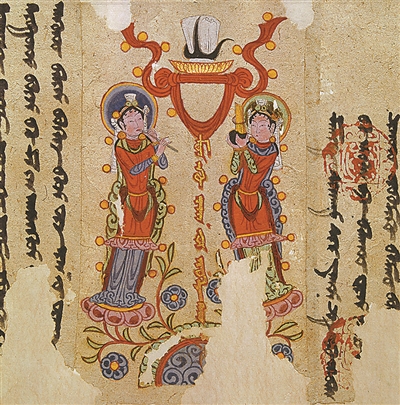 佛教曾是新疆最流行的宗教,絲綢之路上僧侶往來(lái)、佛經(jīng)移譯、佛法流布,對(duì)內(nèi)地影響深遠(yuǎn)。此次展覽中的《妙法蓮華經(jīng)》寫本、龜茲貴族供養(yǎng)人像和展板上的蘇巴什佛寺、克孜爾石窟205窟龜茲王托提卡和王后壁畫等,使我不禁想起了在佛教傳播史上具有劃時(shí)代意義的千古一僧——鳩摩羅什。