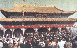為了開發(fā)旅游資源,1989年城區(qū)宗教局特聘釋隆慧法師為城區(qū)宗教協(xié)會(huì)會(huì)長(zhǎng)、白馬禪寺住持,并發(fā)起整建白馬禪寺。1994年在社會(huì)各界的大力支持下,白馬禪寺破土動(dòng)工,先后完成了藏經(jīng)樓、玉佛殿、地藏殿、大雄寶殿、天王殿、誦經(jīng)堂、九龍壁(漢白玉質(zhì))的復(fù)修工程。寺內(nèi)最宏大的建筑毗盧寶殿的建設(shè)也已接近尾聲。從緬甸運(yùn)回的六尊玉像供奉于玉佛殿內(nèi),由臺(tái)灣贈(zèng)送的四十多箱《大藏真經(jīng)》經(jīng)書安放于藏經(jīng)樓上。大雄寶殿內(nèi)的三世佛貼金塑像,莊嚴(yán)肅穆,僅佛頭就有2米多高,蔚為壯觀。其東西兩側(cè)的貼金塑像十八羅漢,形態(tài)各異,威猛雄建。"四大天王"執(zhí)掌著"風(fēng)調(diào)雨順",地藏菩薩專司陰間禍!L焱醯顑(nèi)大肚彌勤佛,心胸永遠(yuǎn)是那么豪放,"容天下難容之事,笑天下可笑之人",那種豁達(dá)、那種寬宏、那種仁厚,可以讓人豁俗慮而漸入佳境。"白馬禪寺"及"大雄寶殿"匾額均由原中國(guó)佛教協(xié)會(huì)會(huì)長(zhǎng)趙樸初先生題寫。