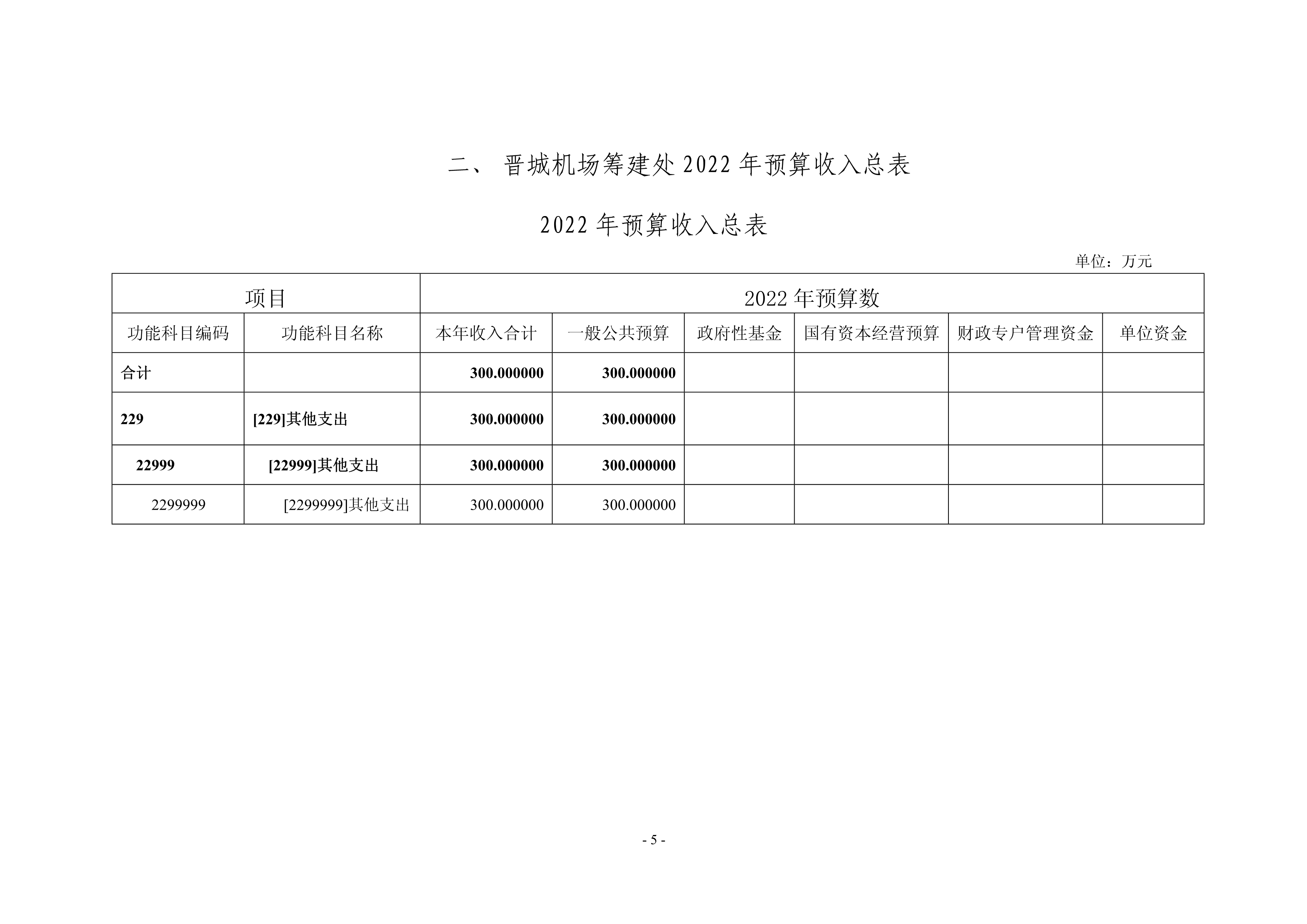 晉城機場籌建處2022年度預(yù)算公開