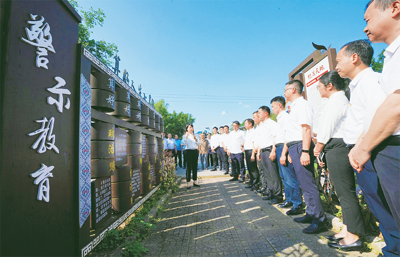 在全黨開(kāi)展黨紀(jì)學(xué)習(xí)教育,是加強(qiáng)黨的紀(jì)律建設(shè)、推動(dòng)全面從嚴(yán)治黨向縱深發(fā)展的重要舉措。當(dāng)前,各地區(qū)各部門(mén)精心組織實(shí)施,不斷推動(dòng)黨紀(jì)學(xué)習(xí)教育走深走實(shí)。圖為2024年5月23日,在廣西融水苗族自治縣一處廉政文化園,黨員干部接受廉政教育。 視覺(jué)中國(guó) 龍林智/攝