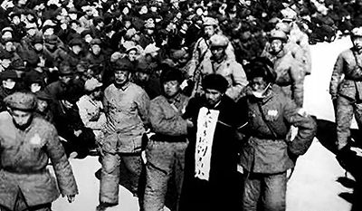 貪污犯劉青山在公審大會上。