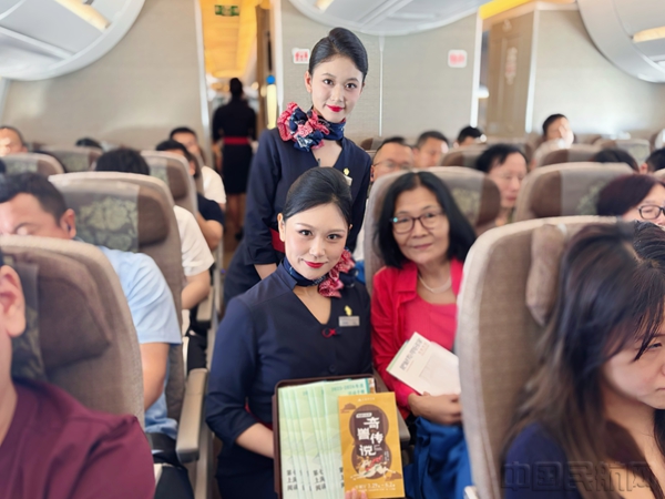 此次主題航班也特別設置“云端寄語墻”,邀請旅客提筆書寫閱讀感悟。旅客則以“在飛機上邂逅書香盲盒,讓旅程多了一份詩意期待”為航程點贊。