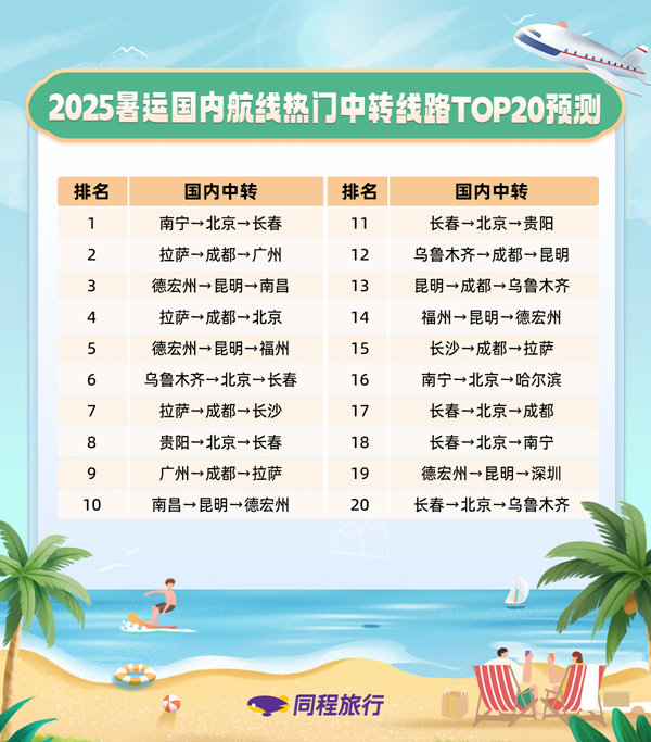 暑運中轉(zhuǎn)聯(lián)程出行方案需求上升,北京、成都、昆明等中轉(zhuǎn)樞紐熱度居前