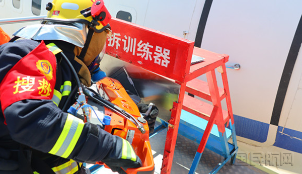 消防員在比賽中進(jìn)行模擬航空器破拆操作(本文圖片均由葉長(zhǎng)青/攝)